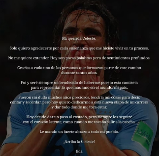 Em 31 de maio, Cavani anunciou o fim oficial de sua carreira com a equipe nacional uruguaiana, o que significa que ele está certo de não participar na Copa America deste verão.